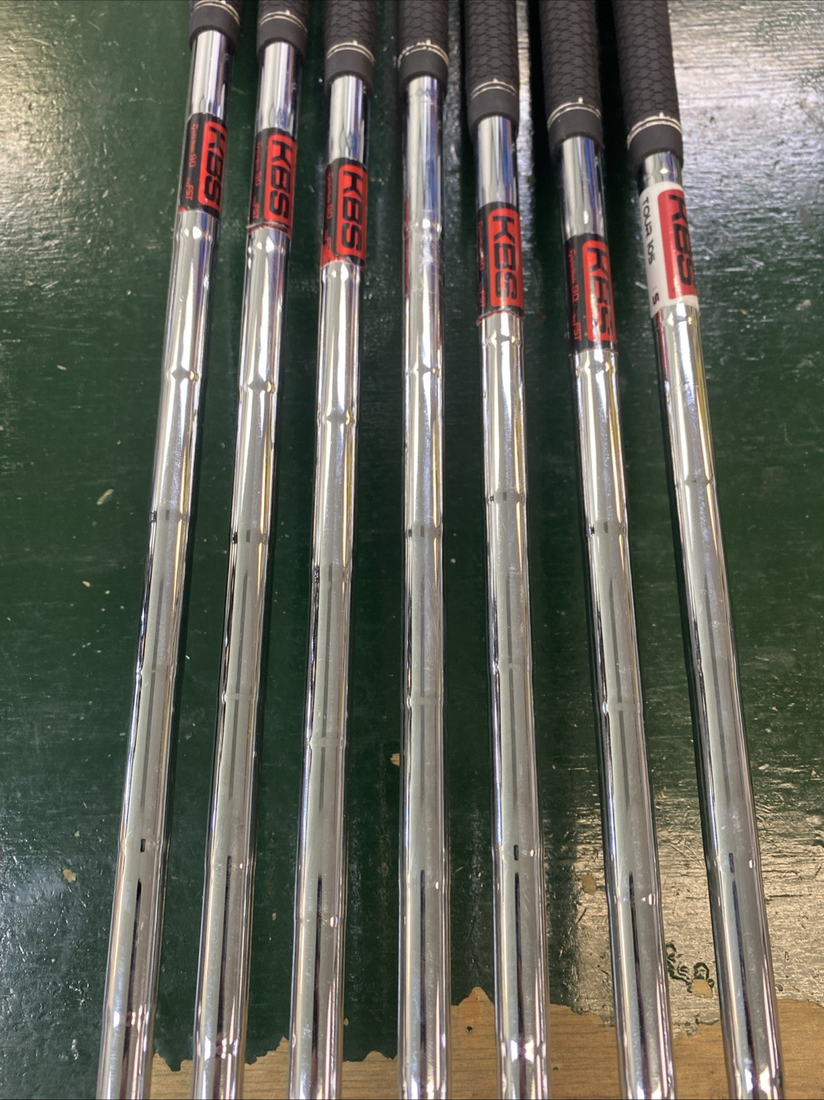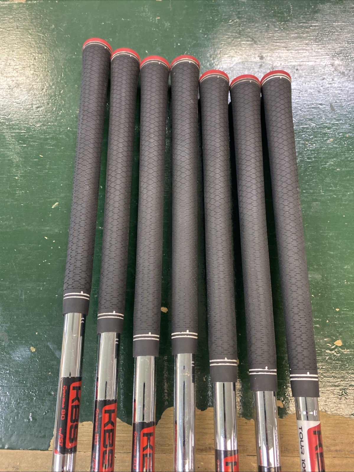 KBS Tour 90 grams stiff flex shafts. Please note the P wedge has a KBS Tour 105 grams stiff flex shaft